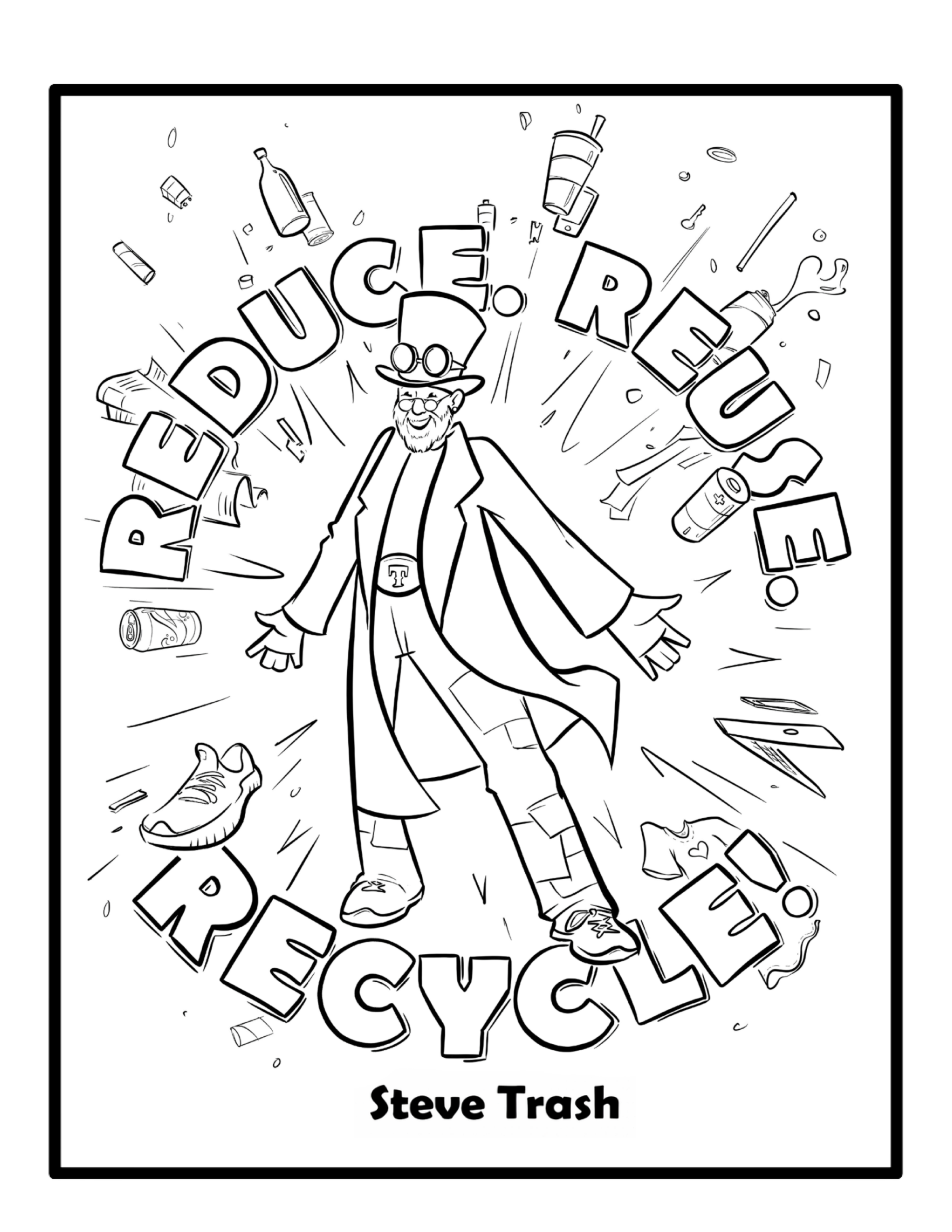 Download these OFFICIAL STEVE TRASH COLORING PAGES for FREE. There are currently four to choose from or you can download them all.