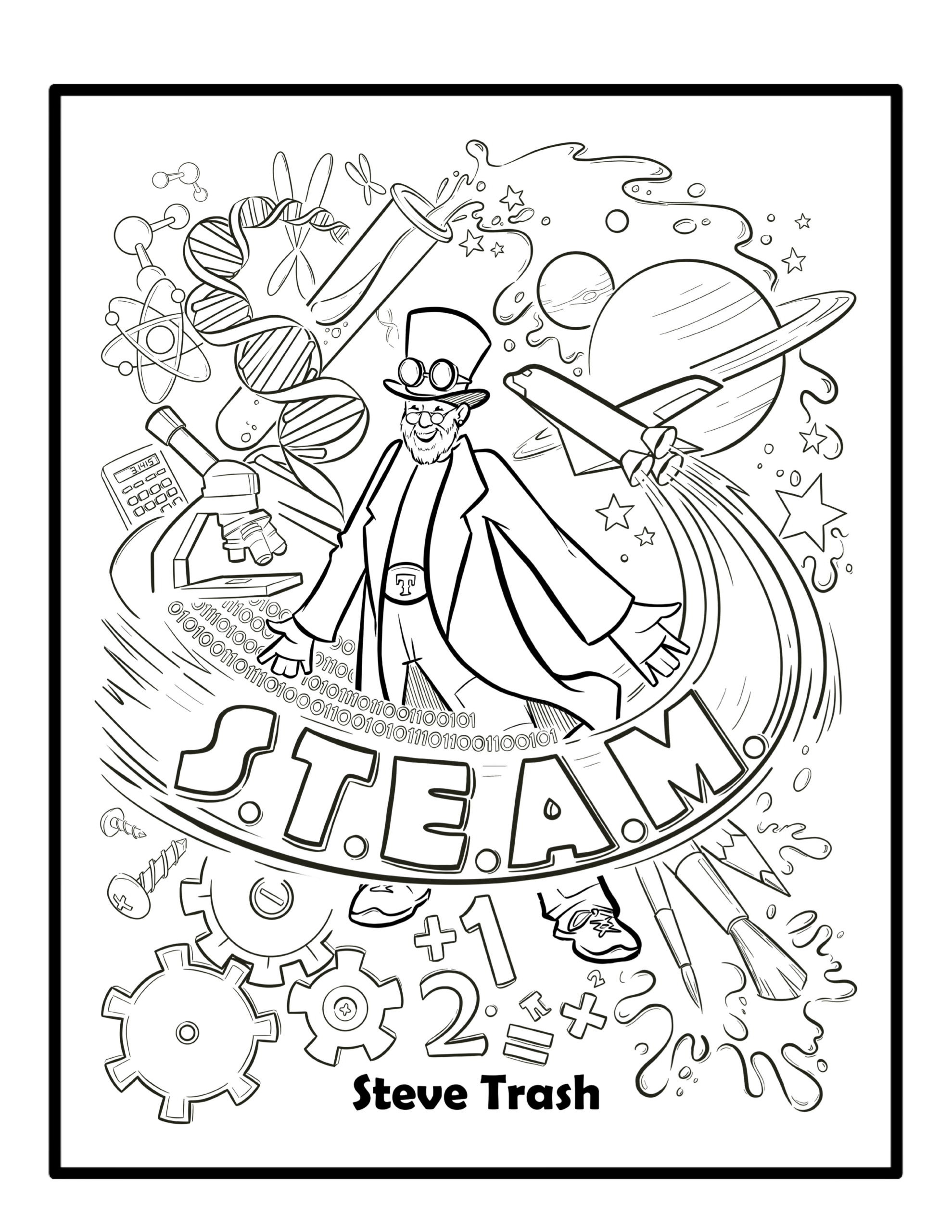 3 of 4 – Click Here to download the – STEAM – SCIENCE TECHNOLOGY ENGINEERING ART MATH – 8.5″x11″ pdf coloring page.